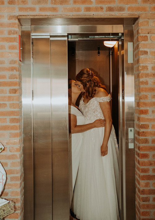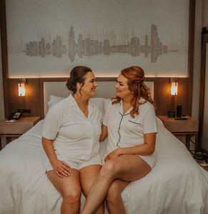 Once they had their hair and makeup done, they put on their wedding attire and stayed in different parts of the room! They wanted to still have the surprise of the first look in seeing each other for the first time. When it came time for their first look it was a total surprise for both and such a sweet moment to kick-start their day ! After seeing each other and packing up their things, we hopped on their trolley tour to some of their favorite spots in the city before their beautiful LGBTQ+ wedding at the Hive on Hubbard.