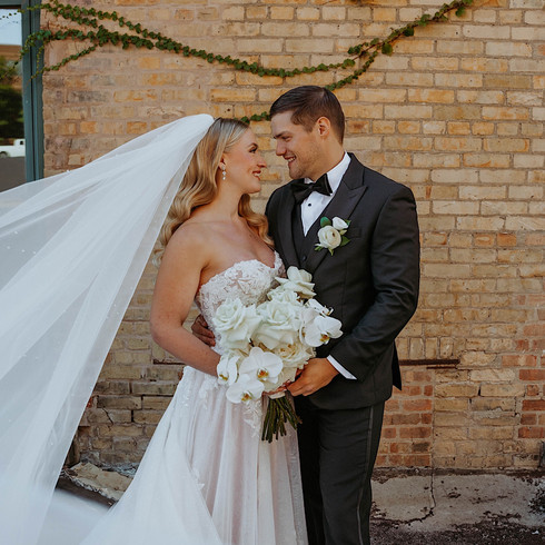 It was time to get this party started, and these two kicked things off in THE coolest way possible ! After their parents and wedding parties entered, it was Alaina and Dakota’s turn. They immediately went into their first dance, which they actually had choreographed by the incredibly talented Debbie from Lux Dance Studio. These two absolutely crushed it, and just like that the celebration had begun ! After some lovely toasts, some delicious food, and a bit of dancing, Alaina, Dakota, and I decided to sneak out for some evening portraits out on the town. These were SO much fun to document. Alaina and Dakota were such a vibe, and practically radiant in their wedding attire while strolling around downtown Elgin. We made our way back to The Highland Loft to end their wedding day with a night of dancing and good times with those they love most.