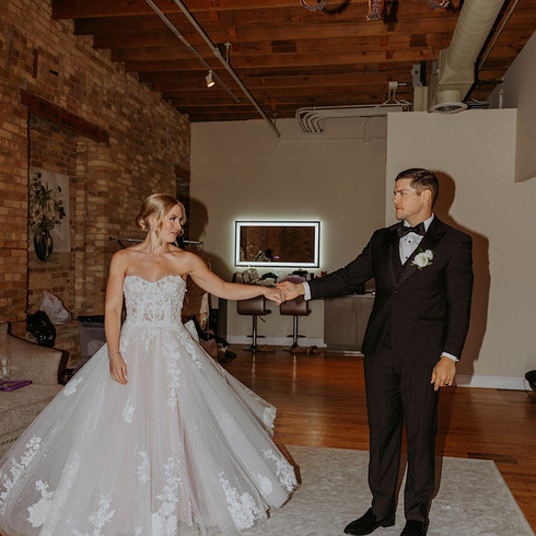 Up next was Alaina and Dakota’s wedding ceremony, which was inside The Highland Loft. I adore this interior space, it’s legitimately one of my favorite ceremony spaces I’ve had the pleasure of photographing. The brick walls, string lit ceiling, and modern industrial feel of the building all make it a dream space for moments like these. With their family and friends all there to support them, Alaina and Dakota officially became newlyweds which meant it was time to celebrate ! After a few family photos in the ceremony space, Alaina and Clayton snuck away to practice some dance moves prior to their reception. Having this extra time on their wedding day was only possible thanks to their first look earlier in the day, which is one of the reasons why I love when my couples include them into their day.